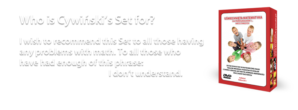 I have established my own method of teaching school math. The key factor that astonishes and amazes my pupils and their parents is the way of explaining the subject. Below I present to you my visit in the “Kawa czy Herbata” (“Coffee or Tea”) program. Thanks to the invitation from Telewizja Polska (Polish Television) three years ago I had the opportunity to present what my idea of teaching school math was: it is not only the modified order of topics that create the process of teaching at schools, but also a whole new way of explaining it with an innovative way of defining its terminology.