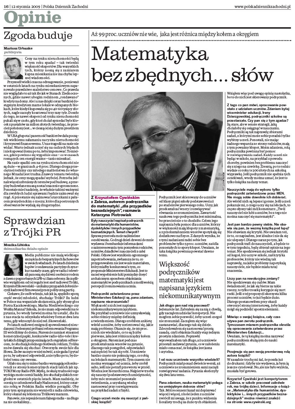 Dziennik Zachodni - Matematyka bez zbędnych... słów (12.01.2009)