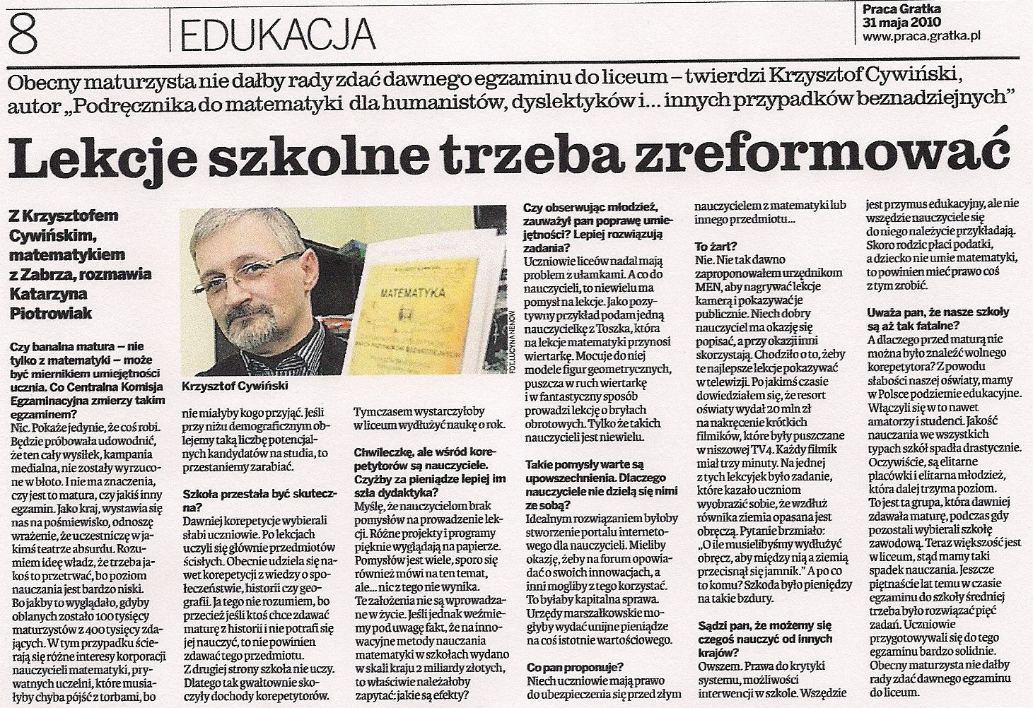 Dziennik Zachodni - Lekcje szkolne trzeba zreformować (31.05.2010)