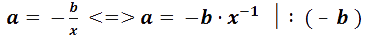 - Czynnik występujący w potędze o wykładniku -1 (odwrotność) rugujemy transpozycją podniesienia obydwu stron równania również do potęgi o wykładniku -1.